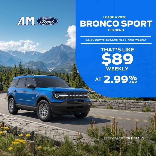 We are eager to meet you! Our friendly, award-winning Ford dealership in Trail, British Columbia, has been happily serving the West Kootenay region for 40 years. Need a work truck, family SUV, or commuter sedan? AM Ford is licensed to sell and service new and pre-owned Ford vehicles. Our dealership in Trail carries the most in-demand Ford models on the market including the Bronco Sport, Maverick, Escape, Explorer, F-150, and Super Duty F-350.